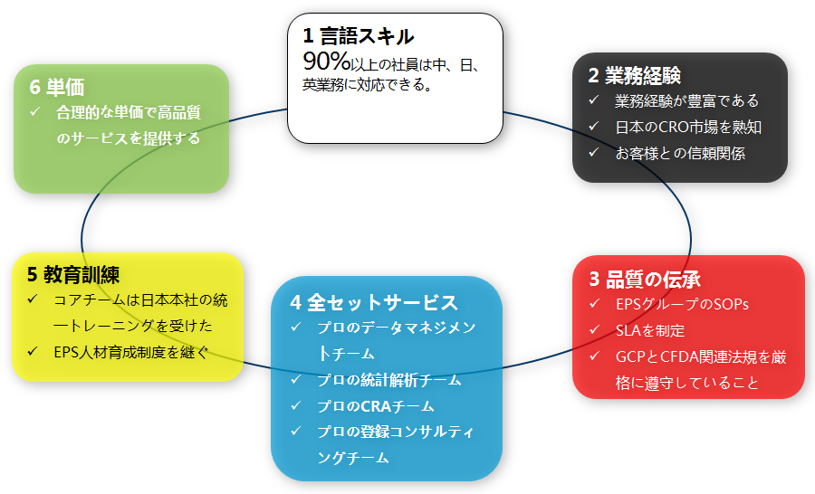 蘇州益新泰格はイーピーエスのCROとしての深い経験に由来する、医療・医薬・ヘルスケア領域での専門的データプロセシング・データサイエンスサービスに強みを有しています。日本向けには当然のことですが、中国向けにも臨床領域電子化の迅速な変革、CDISC適用、医療個性化等の大環境の到来と共に、医療医薬健康領域のビッグデータ処理サービスを提供しています。